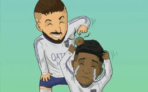 Fabra difundió un dibujo del artistaGonzalo Miño, en donde se lo ve al “Pipa” consolando al colombiano mientras este llora en el suelo con un “chichón” en la cabeza producto del golpe. La publicación original alcanzó los 3 mil likes, incluyendo el del jugador de Boca para una divertida caricatura.