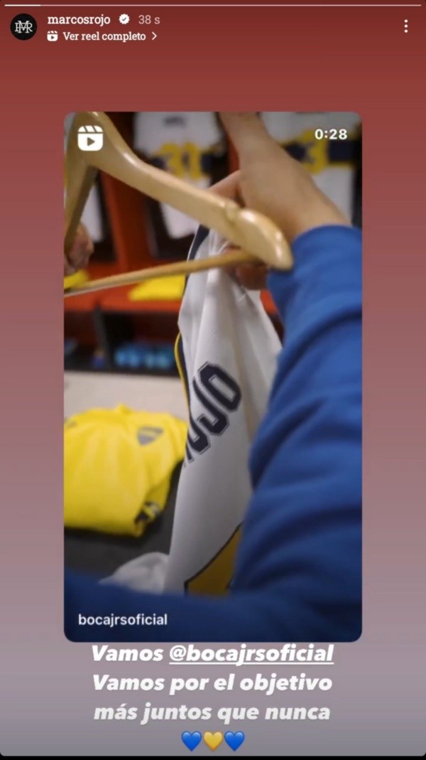 Rojo, que ya fue operado de la rotura de ligamentos cruzados, compartió un emotivo posteo en su cuenta de Instagram para brindarle fuerzas a sus compañeros y también agradecerles el gesto que tuvieron al salir con las camisetas azules y oro con el dorsal del capitán de Boca.