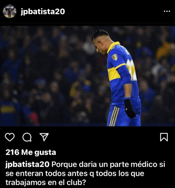 “¿Por qué daría un parte médico si se enteran todos antes que todos los que trabajamos en el club?”, escribió el doctor Jorge Batista a través de su cuenta de Instagram para dejar manifiesta su bronca por la filtración de la lesión que sufrió Sebastián Villa en su rodilla. ¿A quiénes estará apuntando?