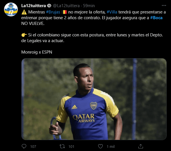 El extremo colombiano pateó el tablero en la semana y dio a entender también verbalmente que no quiere jugar más en Boca y quiere que acepten la oferta que llegó desde el Brujas de Bélgica para cambiar de aire. Y obviamente, al no entrenarse por decisión propia, Boca lo marginó del equipo.