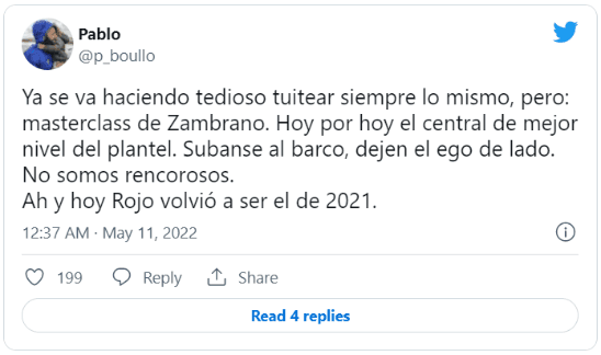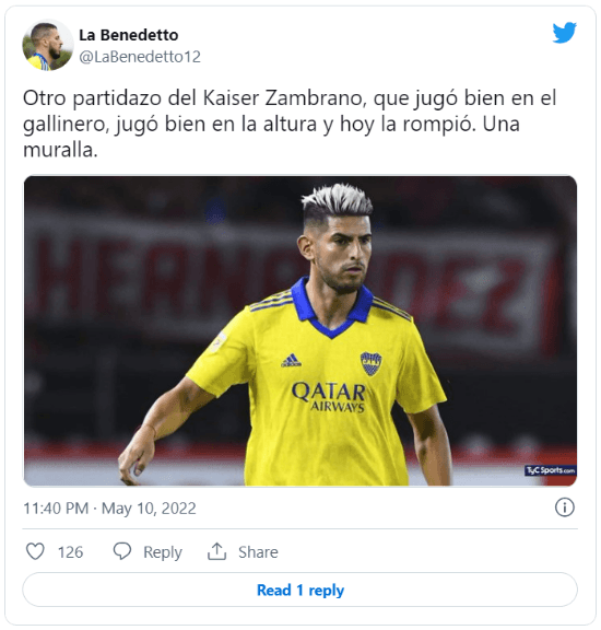 Se trata de Carlos Zambrano, quien tuvo un partido sobresaliente en la línea de fondo. El Káiser volvió a demostrar el nivel por el que Boca lo contrató y en las redes no dudaron en reconocerlo. Hasta uno se animó a decir que el peruano está “cerrando bocas”.