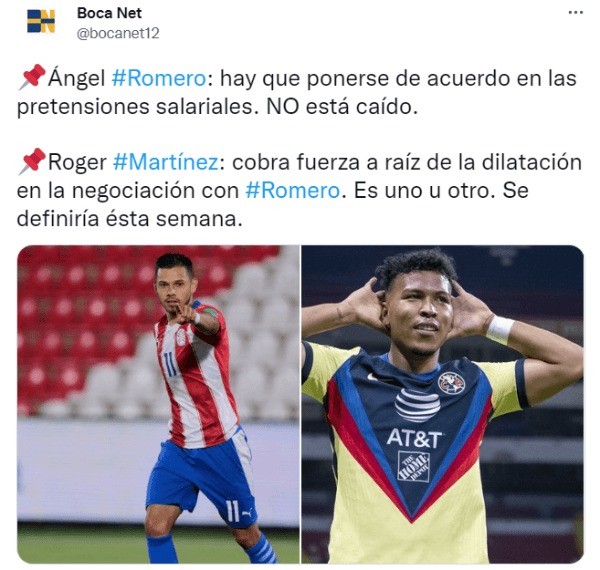 Desde La Ribera saben que existe la posibilidad de que la oferta sea rechazada por parte del guaraní y no se quedarán con los brazos cruzados en caso de que su arribo se frustre. Según informó el periodista Federico Rodas, en conjunto con varios medios partidarios del Xeneize, Riquelme volvería a la carga por un viejo deseo del último mercado de pases. En caso que Ángel Romero no se ponga la azul y oro, el Consejo irá por Roger Martínez como “plan B” en ataque. ¿Hará dupla con Benedetto?