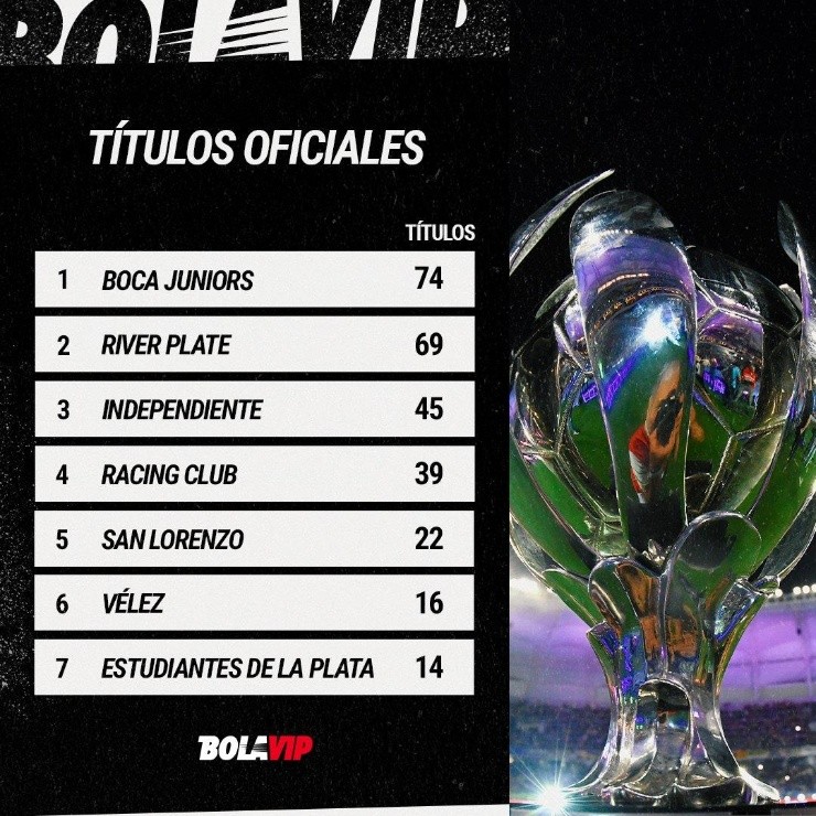 La historia del club de La Ribera es rica como pocas instituciones en el continente y, con el título de este miércoles, alcanzólos52 trofeos nacionales para establecer un nuevo récord en el fútbol argentino. La mencionada final contra el Matador sirvió para igualar la marca de River, quien colecciona 51títulos en competiciones domésticas y veníasiendo el máximo ganador desde la década del 90. No obstante, al vencer a Patronato, Boca esel nuevo líder en la tabla histórica.