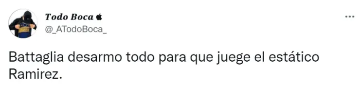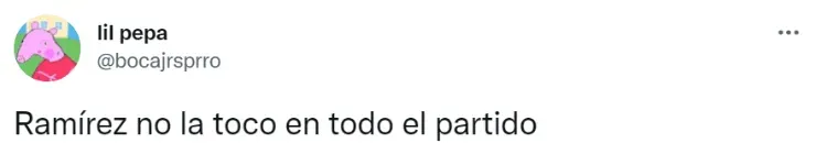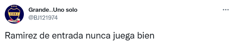 “Qué asco Ramírez”, escribió el usuario @Fleyta1010. Pero no fue el único. También se vieron algunos comentarios como el de @bocajrsperro, quien sostuvo que “Ramírez no la tocó en todo el partido”.