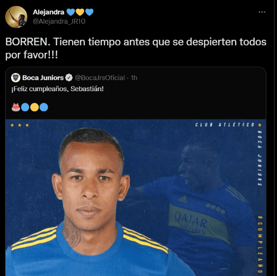 “¡Feliz cumpleaños, Sebastián!”, escribió la cuenta oficial del Xeneize en Twitter, algo que hacen con cada miembro del plantel. Lejos de dejarla pasar, en los comentarios aparecieron varios hinchas repudiando el mensaje y otros considerándoloinoportuno.