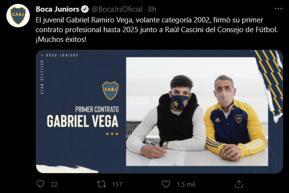 Sin embargo, hoy se cerró una incorporación sorpresiva en el club de La Boca. Con la constante apuesta que se viene afrontando por los juveniles de la mano del Consejo del Fútbol y del entrenador Miguel Ángel Russo, Boca siguió por ese rumbo y le firmó el primer contrato profesional al volante Gabriel Ramiro Vega.