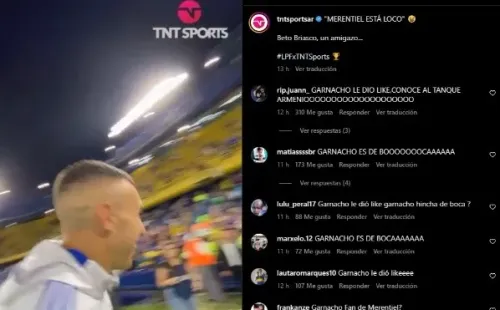 El video fue publicado en Instagram y fue allí cuando Garnacho sorprendió a todos con su like, algo poco habitual tratándose del fútbol argentino. Los hinchas de Boca inmediatamente se dieron cuenta y generaron una catarata de comentarios en el posteo de TNT Sports en referencia a un posible guiño del hispano-argentino hacia el Xeneize.