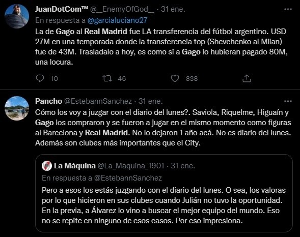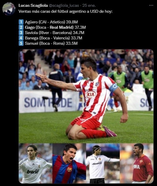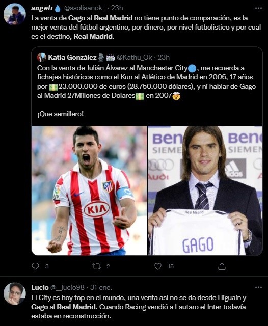 ¿Cuál es la venta más importante de un argentino a un gigante europeo? Los hinchas del Millonario destacaron en Twitter el traspaso de “La Araña” pero rápidamente los fanáticos de otros clubes empezaron a proponer variantes iguales o mejores a la transacción que protagoniza Álvarez, quien arribará al City recién a mitad de año.