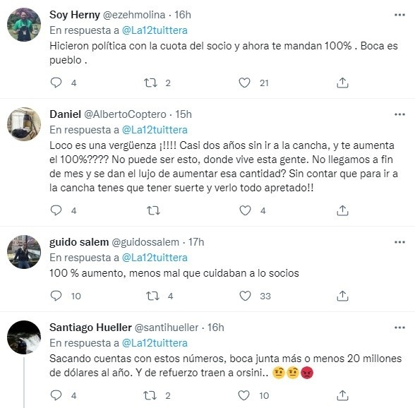 “Hicieron política con la cuota del socio y ahora te mandan 100%. Boca es pueblo”, escribió un hincha. “100% aumento, menos mal que cuidaban a lo socios”, añadió otro.
