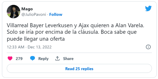 Es por eso que no sorprende escuchar que es buscado desde Europa. Fabrizio Romano, periodista especializado en el mercado del Viejo Continente, fue contundente: “Están siguiendo al talentoso mediocampista de Boca Juniors, Alan Varela. Existe la posibilidad de que pueda mudarse en 2023 después de sus brillantes actuaciones.Hay una cláusula de rescisión de 15 millones incluida en el contrato”.