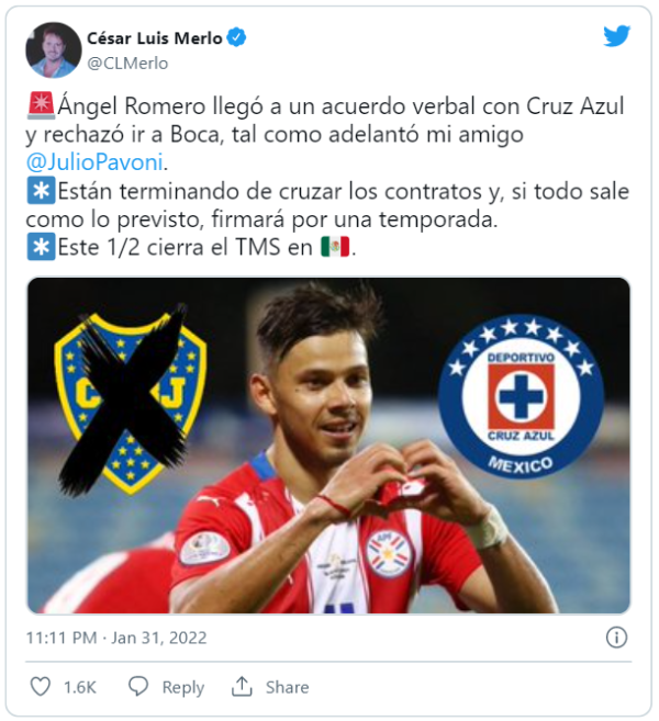 En las últimas horas apareció Cruz Azul y complicó todo. El conjunto mexicano ofreció un contrato muy superior al que puede pagar Boca y todo indica que el futuro de Ángel estará en la Liga MX. El TMS de ese país cierra el 1 de febrero, por lo que restan horas para que el fichaje sea oficial.