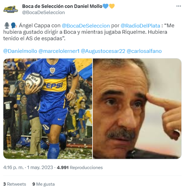 Luego, confesó que le hubiera encantado tener otro paso: “Me hubiera gustado dirigir a Boca y mientras jugaba Riquelme. Hubiera tenido el AS de espadas. Él estuvo a la altura de los grandes futbolistas que tuvo el fútbol argentino en su historia. Era un placer verlo. Cada vez que lo ví jugar y hablé con él, aprendí mucho de fútbol”.