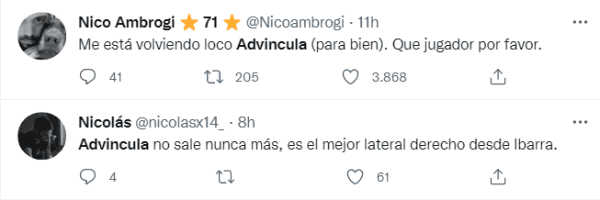 Los elogios de los hinchas para Advíncula: