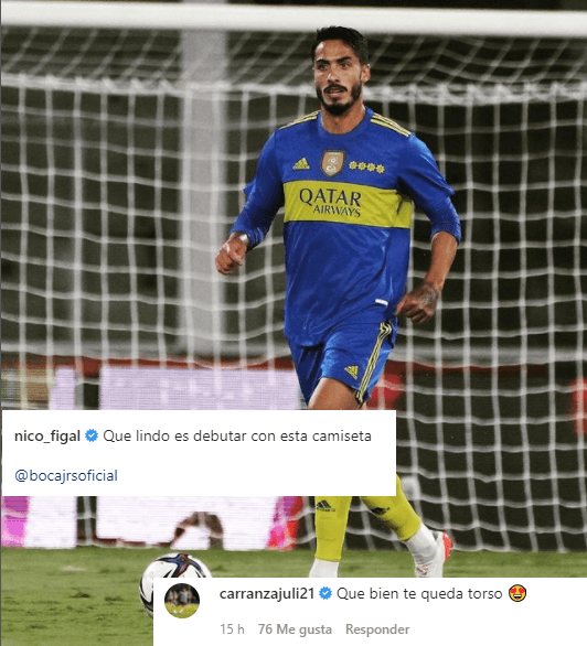 Julián Carranza, delantero surgido en Banfield, fue pretendido en dos ocasiones por Marcelo Gallardo para sumarlo a River (una en 2016 y otra en 2018) pero nunca se pudo concretar su pase porque el Taladro quería un monto mayor al ofrecido por el Millonario. Tiempo después, en 2019, fue vendido al Inter Miami por 5 millones y medio de euros y allí fue compañero de Figal. Para felicitar a su ex compañero, el jugador que fue codiciado por River soltó un mensaje ¿bostero?. En la caja de comentarios del posteo de Nicolás Figal, Carranza le escribió: “Que bien te queda torso”, junto a un emoji enamorado. ¡Llamativo!