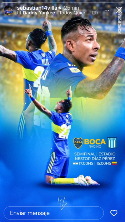 Alrededor de la medianoche, Villa rompió el silencio en sus redes sociales para subir su característica gráfica pre-partido, confirmando que hoy dirá presente en la cancha de Lanús. De fondosonaba la canción“Todos quieren a Raymond” de Daddy Yankee, que tiene una letra particular.