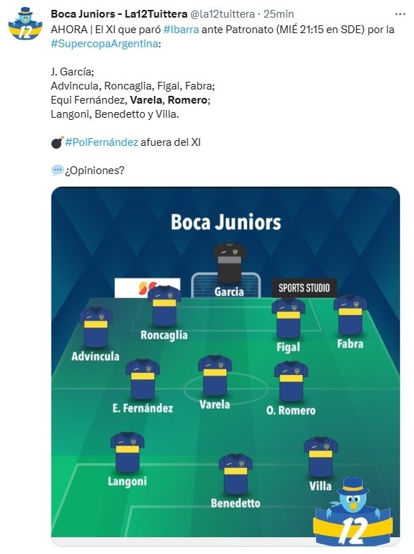 Sin embargo, ninguna determinación sorprendió más que la suplencia de un jugador que venía siendo titular de forma ininterrumpida deste octubre. Es que Ibarra decidió volver a tocar el mediocampo y Guillermo Fernández fue el sacrificado en la zona de gestación, por lo que el entrenador paró aEqui Fernández, Alan Varela y Óscar Romero en un 4-3-3 que se mantuvo desde el inicio de la semana.