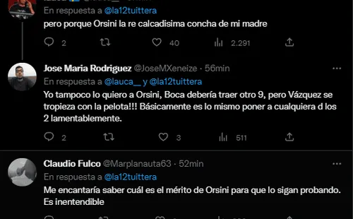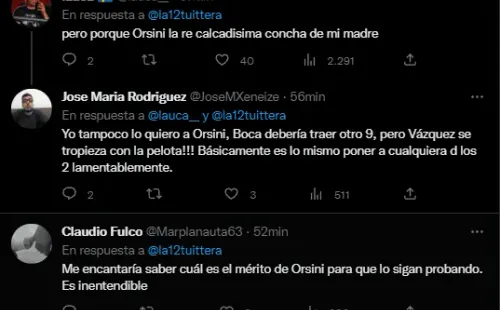 El ex Lanús no tuvo buen desempeño en su paso por Boca desde que arribó en junio de 2021 y por eso varios usuarios en las redes sociales cuestionaron su presencia en el XI. Lo cierto es que sin el “Pipa” por la suspensión, Ibarra solo cuenta con Orsini y Luis Vázquez como variantes en el centro del ataque, ya que Gonzalo Morales fue bajado a la Reserva para que tenga más rodaje, y el “38” tampoco está a un buen nivel. Aún así, los hinchas no entendieron que el atacante para el debut sea Nicolás Orsini y lo expresaron en los comentarios en redes. ¿Qué te parece el XI de Ibarra?