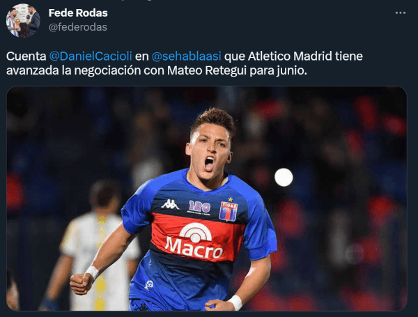 Sí, a pesar de que Chapita se encuentra a préstamo en Tigre, el periodista Daniel Cacioli afirmó enDe Fútbol Se Habla Así, por DirecTV Sports, que Atlético de Madrid tiene avanzada la negociación para llevarse al ex Estudiantes de La Plata a mitad de año.