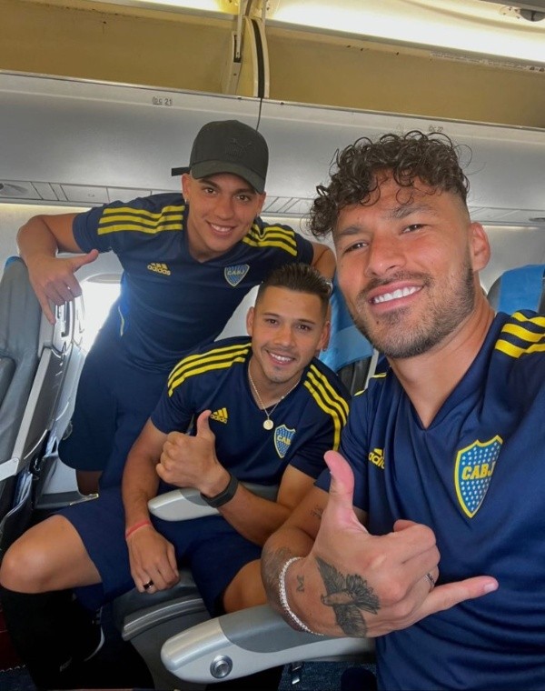 A pesar de la demora dentro del avión, los jugadores de Boca se mostraron sonrientes y sin que el inconveniente los afecte porque aún no despegaron. Claro, entienden que son situaciones que pueden ocurrir y esperan que lo solucionen a tiempo para llegar al hotel de concentración, donde serán recibidos por una multitud.