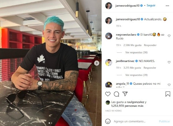 Por supuesto, todos se burlaron a su manera de la drástica decisión que tomó James con su pelo. Uno de los comentarios con más “likes” fue el que lo comparó con la cantante colombiana Karol G.