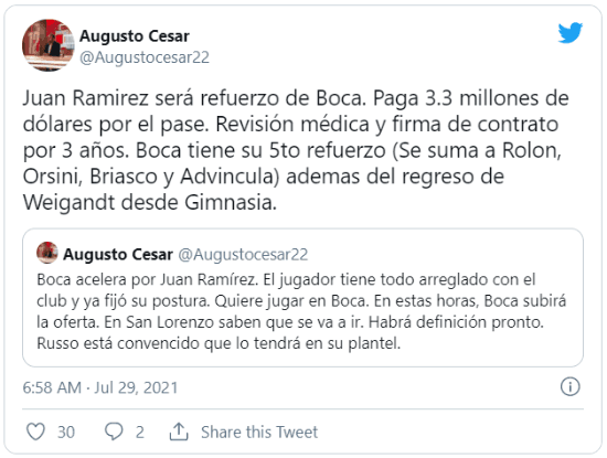 Cabe destacar que, salvo alguna aparición de último momento, Juan Román Riquelme no buscaría más jugadores para Boca en este mercado de pases. A la espera de la firma de Luis Advíncula, el Xeneize cerraría la etapa de incorporaciones con 5 refuerzos.