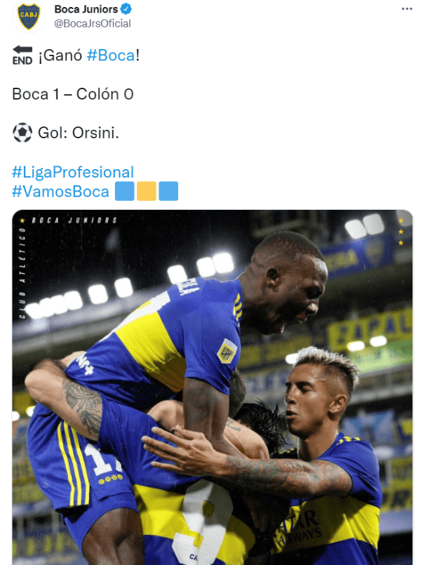 Bocavenció a Colon por 1-0, en el marco de la fecha 13 deLiga Profesionaly con este resultado, el equipo llega a 8 partidos invictos de la mano de Sebastián Battaglia. Además, Nicolás Orsini se sacó la mufa y gritó por primera vez como jugador del Xeneize anotando el único gol en La Bombonera.