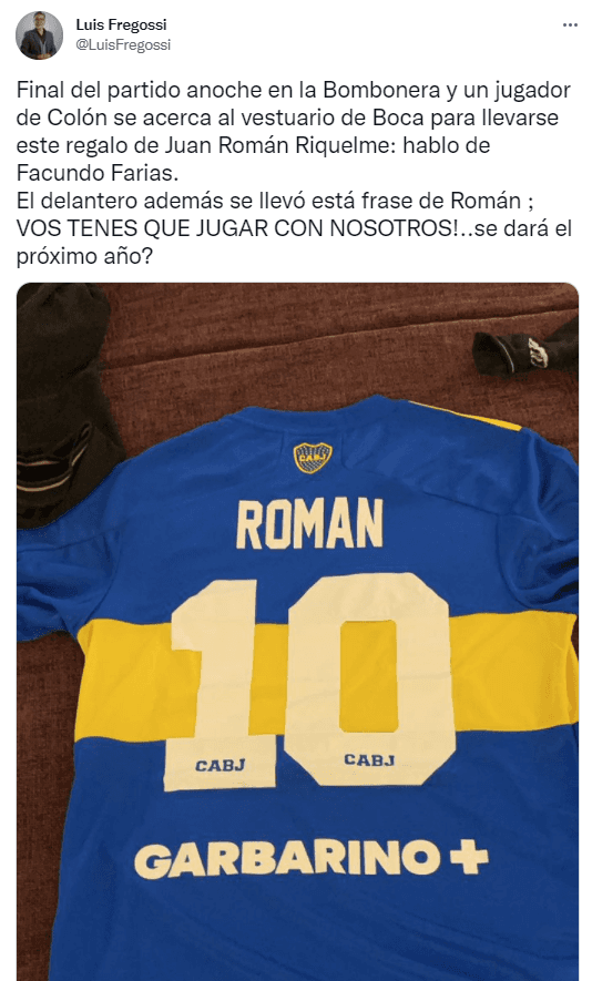 Como si fuera poco, el periodista Luis Fregossi aseguró al día siguiente del triunfo del club de La Ribera que el mismo Riquelme le lanzó a Farías una frase tentadora para jugar en el Xeneize en un futuro. “Vos tenes que jugar con nosotros”, le habría dicho elÚltimo Diezal joven y talentoso jugador de Colón que tiene todos los reflectores encima por su gran rendimiento en el fútbol argentino.