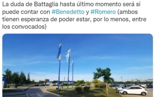 Mientras lo del “Pulpo” es muy complicado, el interés de los hinchas pasa por la situación del “Pipa” y Óscar. El periodista Emiliano Raddi contó en Twtiter que “la duda de Battaglia hasta último momento será si puede contar con Benedetto y Romero (ambos tienen esperanza de poder estar, por lo menos, entre los convocados)”.