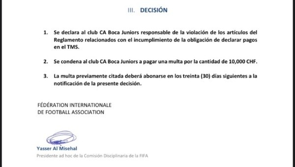 El periodista Germán García Grova informó que la FIFA sancionó a Boca por la contratación de Franco. “La comisión disciplinaria de FIFA sancionó a #Boca por ocultar información en la contratación de Franco Soldano. El club argentino hizo figurar dos prestamos ‘a costo cero’ cuando en realidad pagó €700.000“, señaló.
