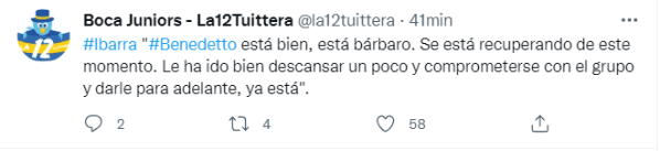 Sin embargo, en el final de las declaraciones hubo una advertencia para Benedetto tras el altercado con Zambrano. “Le vino bien descansar para comprometerse con el grupo”, señaló el DT del Xeneize acerca de las tareas que tuvo que realizar el atacante luego de reflexionar sobre lo ocurrido en Avellaneda. Finalmente, Ibarra dejó en claro que eso quedó atrás: “Ya lo hablé con el. Lo pasado, pasado”.