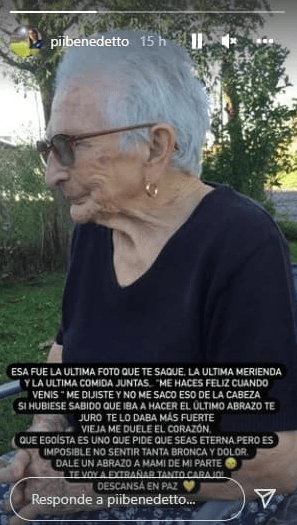 La familia Benedetto no se encuentra pasando un buen momento y una de las primeras integrantes en manifestarse fue su hermana, a través de su cuenta de Instagram @piibenedetto. “Esa fue la última foto que te saqué. La última merienda y la última comida juntas. ‘Me hacés feliz cuando venís’, me dijiste y no me saco eso de la cabeza. Si hubiese sabido que iba a ser el último abrazo te juro que te lo daba más fuerte”, escribió como parte de un emocionante comunicado en redes sociales.
