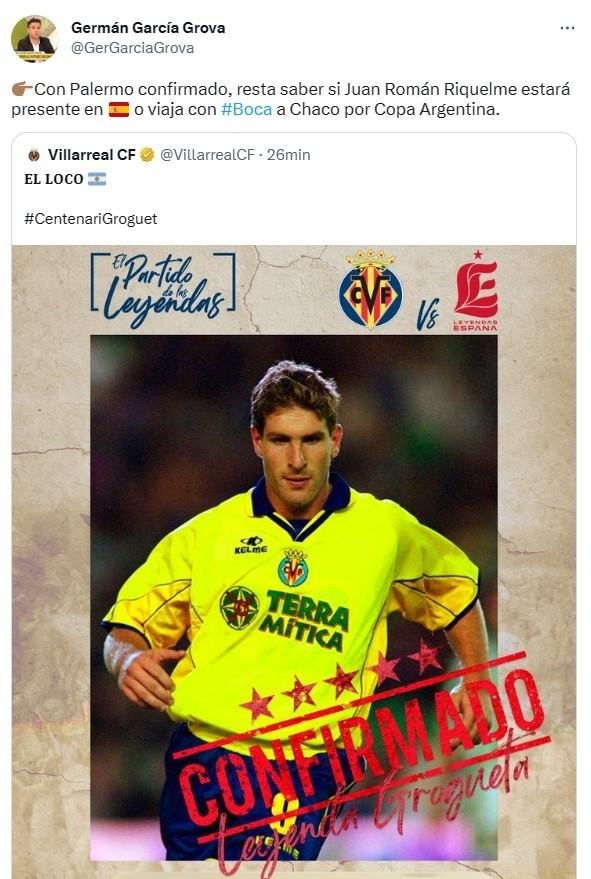 Es que, en el mismo fin de semana en el que el Xeneize intentará conseguir un buen resultado para alivianar el mal clima, el vicepresidente del club fue invitado para disputar el “Partido de Leyendas” en honor a los 100 años de la fundación del Villarreal y su presencia estaba prácticamente confirmada, pero el presente de Boca puso en duda su asistencia. Así lo observó el periodista Germán García Grova.