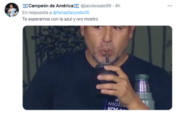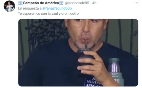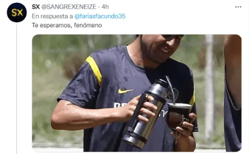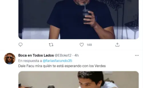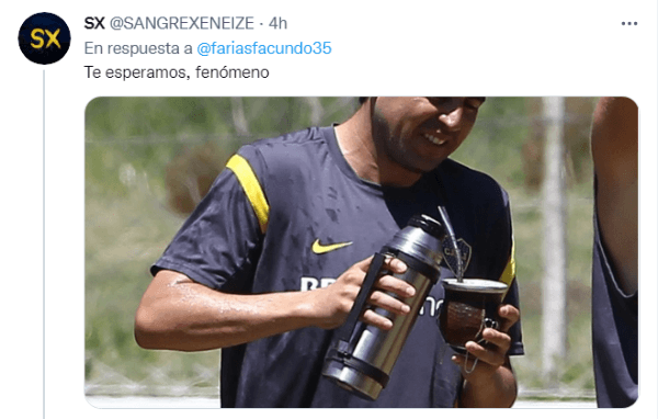 En ese contexto, el jugador de Colón abrió su cuenta oficial de Twitter en el mes de octubre y solo tiene dos fotos posteadas en su perfil. En la última que publicó se lo ve a Facundo posando con un mate y en pocas horas llegó casi a los 10 mil likes. Lo llamativo apareció en la caja de comentarios, donde cientos de hinchas de Boca plagaron el posteo con pedidos para que se ponga la camiseta azul y oro. “Te esperamos”, fue la frase que más se leyó, junto a fotos de Riquelme. ¡Una locura!