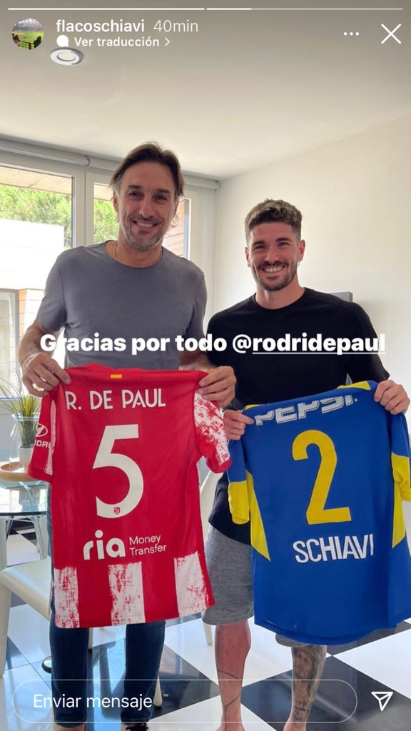 Allí, recibió a una gloria de Boca: Rolando Schiavi. El “Flaco” está en España y se encontró con De Paul y realizaron un intercambio de camisetas. El aguerrido zaguero de Bocaya retirado recibió la camiseta del volante con la número 5 del Atlético Madrid y él, a cambio, le dio una suya del Xeneize de las épocas doradas de Carlos Bianchi.