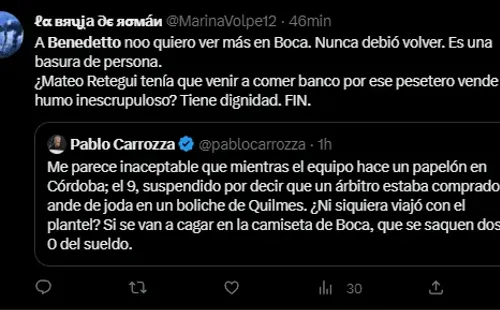 En lugar de acompañar a la delegación a Córdoba para el primer partido de visitante del año, como sí ha hecho en los encuentros disputados en La Bombonera, el Pipa se quedó en Buenos Aires y asistió a un local bailable tras la derrota de Boca contra Talleres. Y si bien se vieron varios hinchas xeneizes fotografiándose con él, en estas horas de domingo en las redes sociales repudiaron que Benedetto haya ido a un boliche luego de la caída del equipo de Hugo Ibarra. ¿Qué opinás al respecto?