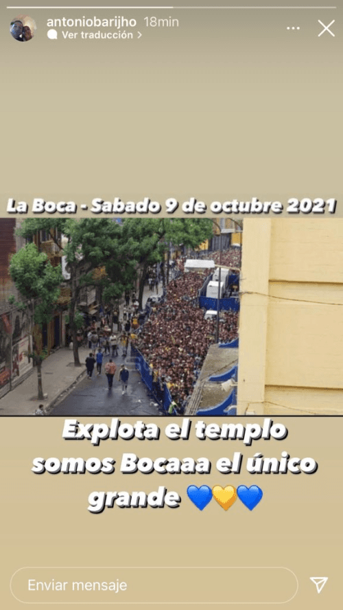 Antonio Barijho, exjugador muy querido y ahora empleado del club de la Ribera, subió una historia a su cuenta de Instagram palpitando la vuelta del público. “La Boca – sábado 9 de octubre 2021”, escribió el Chipi con la imagen de una multitud de hinchas esperando para ingresar al estadio.