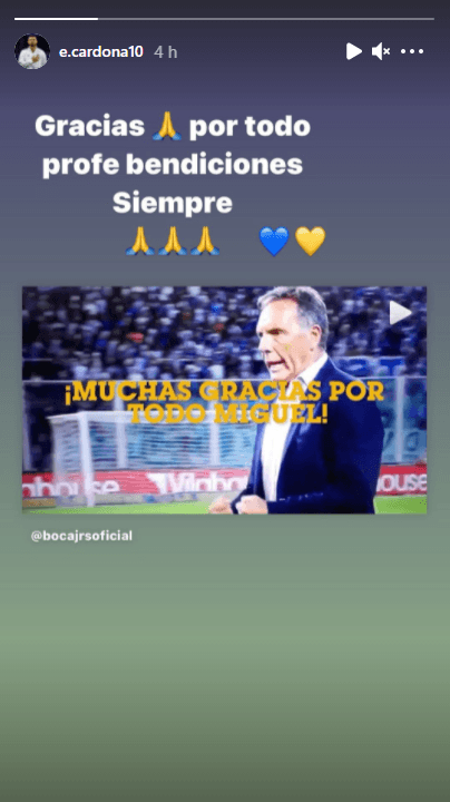 Así y todo, Miguel Ángel Russo le dio nuevas oportunidades al jugador y su rendimiento no estuvo a altura, generando aún más roces con todo el Mundo Boca. Y hoy, con la confirmación de la salida del entrenador del Xeneize, Cardona más allá de todo lo ocurrido, tuvo un buen gesto y lo despidió en sus redes.