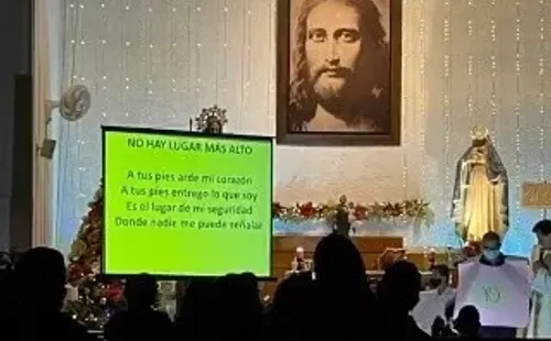 En la imagen se puede observar la cara de Dios, además de una virgen. Sin embargo, lo que llamó la atención fue un cartel verde que también está dentro de la misma foto, en donde se puede leer una frase bastante particular: “No hay lugar más alto. A tus pies arde mi corazón, a tus pies entrego lo que soy. Es el lugar de mi seguridad, donde nadie me puede señalar”, señala el texto.