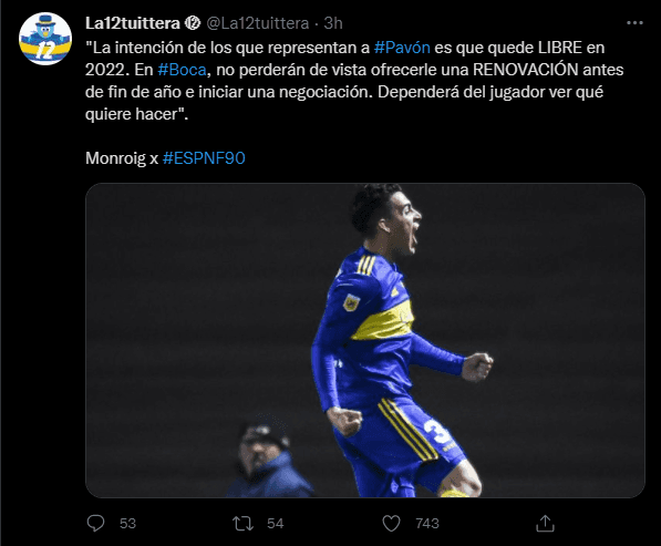 Sin embargo, según informó Diego Monroig, Boca no pierde de vista renovarle el contrato en diciembre y extenderlo para que se quede en el plantel o que sea transferido y le deje una suma de dinero al club al salir. Todo esto, quedaría atado a la desición de Pavón.