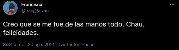 En agosto de este año, el propio Francisco recordó su publicación y escribió: “Creo que se me fue de las manos todo. Chau, felicidades”. En las últimas horas, como previa de un 2022 que genera esperanza entre todos los hinchas de Boca, el tuit se volvió viral. ¿Le habrá llegado a Battaglia?