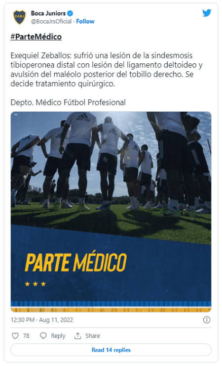 Después de unas horas, pasado el mediodía, se confirmó la peor noticia: el delantero de Boca deberá ser operado en las próximas horas. Así lo confirmó el propio club en sus redes sociales con el tan esperado parte médico.
