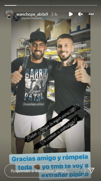 Ábila no tardó en subirla también a sus redes con un sentido mensaje para el 9 de Boca, siendo ésta su primera storie de la red social que desembocó la problemática entre él y el club. “Gracias amigo, y rompela toda. Yo también te voy a extrañar Pipino“. ¿Aguas calmadas tras confirmarse su salida?