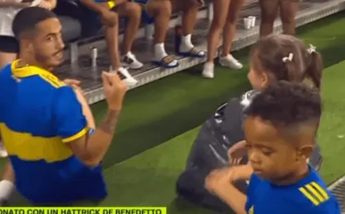 Mientras todos se reían, la cámara rápidamente enfocó a los dos niños de la mano y hasta se vio la reacción de Nicolás Figal mientras su hija paseaba por el borde del campo de juego junto al hijo de Frank. Sin dudas, la joya de la noche tras la consagración del Xeneize en la Supercopa.