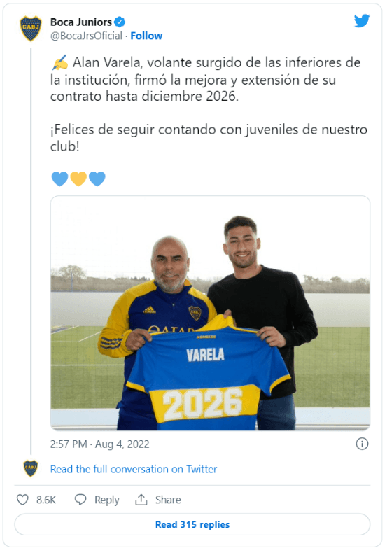 Entre tanto fuego cruzado, en Boca se celebró la continuidad de Alan Varela, que tenía contrato hasta 2025 pero llegó a un acuerdo para estirarlo por un año más y con una cláusula millonaria. La semana que viene irán por otra renovación: la de Exequiel Zeballos.