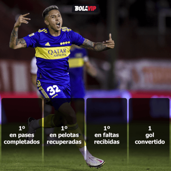 Compartiendo la mitad de cancha con Montes y Rolón, el mediocampista de 21 años volvió a destacarse en El Xeneize. Esta noche, fue el jugador quemás pases precisos dio (54), pelotas recuperó (10) y faltas recibió (3). Además, lideró los duelos ganados (11/16)y convirtió un verdadero golazo. La figura.