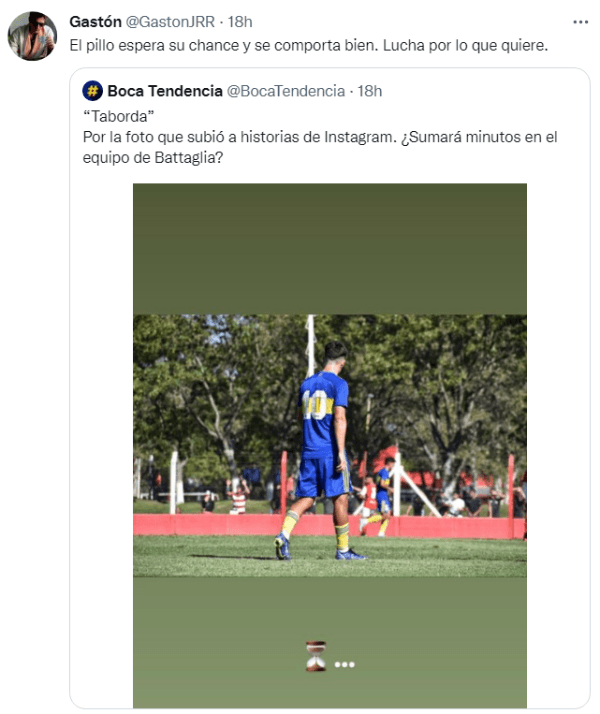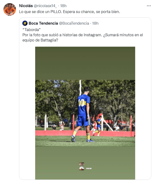Otro de los que aguarda el llamado del DT es Vicente Taborda, uno de los mejores futbolistas del plantel que dirigen Ibarra y Serna. El pibe se mostró optimista de cara a lo que viene y, mediante una historia en Instagram durante el escándalo en Boca, posteó un breve mensaje que dejó tela para cortar. Los hinchas lo hicieron tendencia debido a las conjeturas de la foto, en la cual aparece un reloj de arena y varios puntos suspensivos. ¿Cuestión de tiempo para subir nuevamente a Primera?