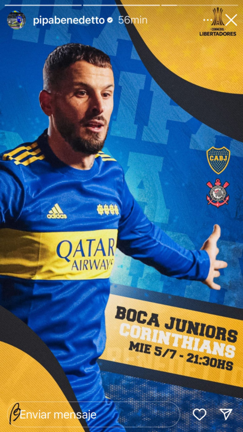 El clima copero se sentirá fuerte en el estadio, pero también en las redes sociales. La ansiedad para que llegue la hora del encuentro está latente y Darío Benedetto subió una historia a su cuenta de Instagrampara palpitar la cita de esta noche.