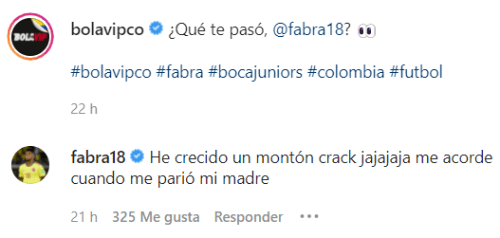 Lejos de ofenderse, el experimentado defensor xeneize se tomó con humor el comentario y se despachó con una divertida justificación: “He crecido un montón crack jajajaja me acorde cuando me parió mi madre”, soltó el zurdo. ¡Un genio!