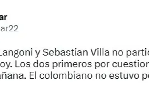 Por último,Sebastián Villa tampoco formó parte de la sesión de trabajoen el predio boquense por cuestiones judiciales. Es por eso que el colombiano no fue incluido en los ejercicios tácticos, pese a que Ibarra prácticamente cuenta con él para ir desde el arranque. Aún así, se espera que los tres ausentes durante este miércoles vayan desde el inicio contra Olimpo para intentar cortar la mala racha.