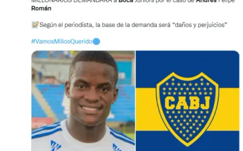 Desde la tierra cafetera, el periodista César Augusto Londoño indicó, en Caracol Radio, la acción legal que tomarán los directivos de los Azules contra el Xeneize. “Millonarios va a demandar a Boca Juniors por el caso de Andrés Felipe Román. Será por daños y perjuicios”, informó el integrante del programa El Pulso del Fútbol.